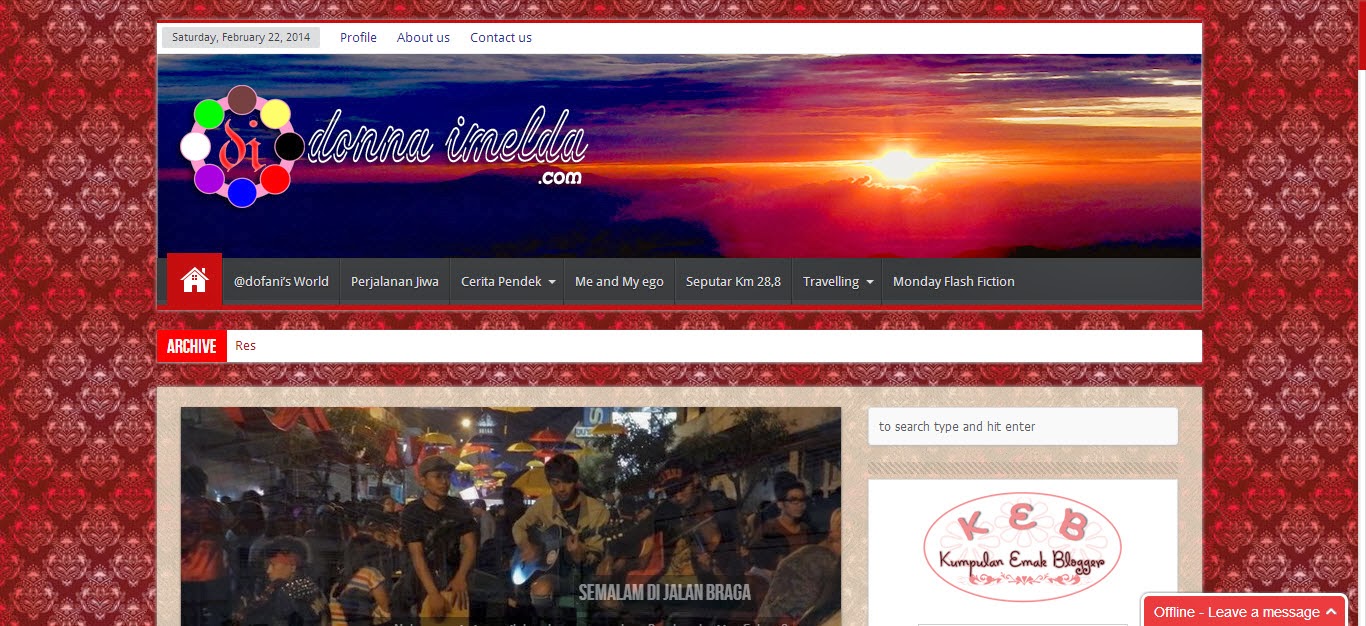 Pecinta warna ungu, pecinta diving pemburu sale diskon *penting disebut* qiqiqi.. ini selalu membawa keceriaan setiap saat. Aku pertama mengenalnya saat event Asean Blogger lalu. Visi misinya adalah ‘Wherever I go, wherever I live, the joy of life be cherised and shared in her blog. She wants to bring Indonesia to the World. Buat yang ingin mengenal lebih dekat bisa berkunjung ke blognya