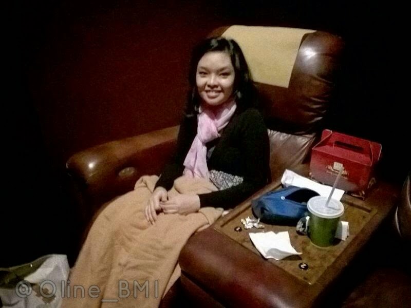 Kamipun diantarkan menuju seat kami di bagian paling atas. Selama perjalanan anak tangga menuju keatas, aku bingung kok orang-orang pada pakai selimut ya? Hahaa.. ternyata, kalo di premiere itu memang disediakan selimut. Si mba-mba ticketing juga memberi tahu bahwa disediakan selimut jika dibutuhkan dan lokasinya di dalam laci.