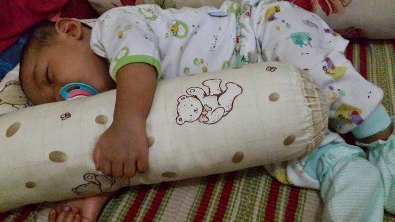 Nah, ini biasanya saya berikan Narend guling untuk dia peluk saat menjelang tidurnya. Tapi ya kadang-kadang suka gak berhasil juga sih. Karena Narend terbiasa dengan empeng. Yeaah balik lagi ke empeng :))
