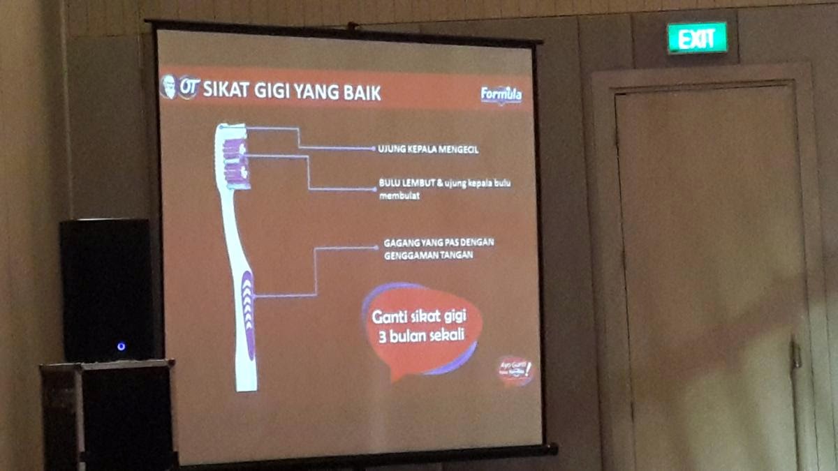 Di sela-sela sesi ini diperlihatkan juga perbandingan sikat gigi yang memiliki bulu kasar dan juga lembut.