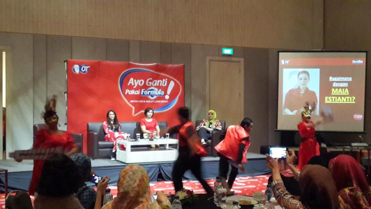 Selesai sesi eggsperimen, MC mengundang sang Brand Endosser Formula Oral Care, yaitu Maia Estianti. Woow, semua mata tertuju padanya sekejab 🙂