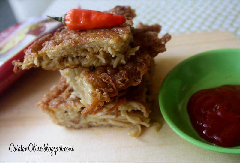 7. Bila minyak sudah panas, masukkan adonan telur dan mie tersebut ke dalam minyak kemudian goreng sampai garing.