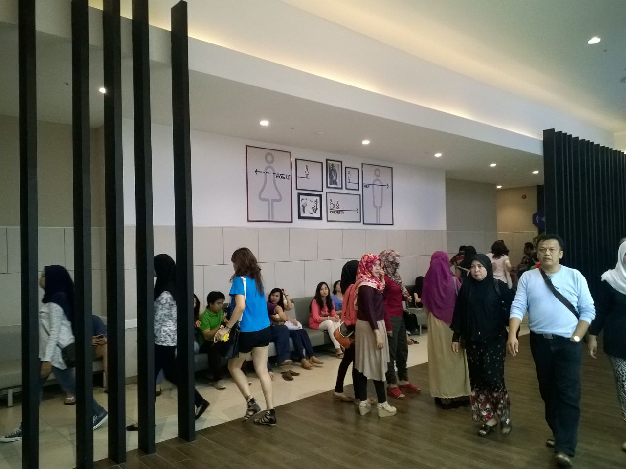 Whoppss.. saya dan suami mau ke toilet nih. Dimana ya toiletnya? Karena saking banyaknya pengunjung saat itu, akhirnya kami kesulitan untuk menemukan toiletnya 🙁 Setelah muter-muter akhirnya kami menemukan juga toiletnya, dan antri *glek*. Ternyata gak jauh dari lift, tinggal belok kanan aja, sampe deh. Eh di lantai 3A juga ada toiletnya. Gak jauh dari pintu keluar masuk yang ada securitynya itu. Kami juga baru tahu saat kami mau pulang. Lihat ada petunjuk toilet dan musholla disitu. Iya, disini juga ada mushollanya, di lantai 3A.
