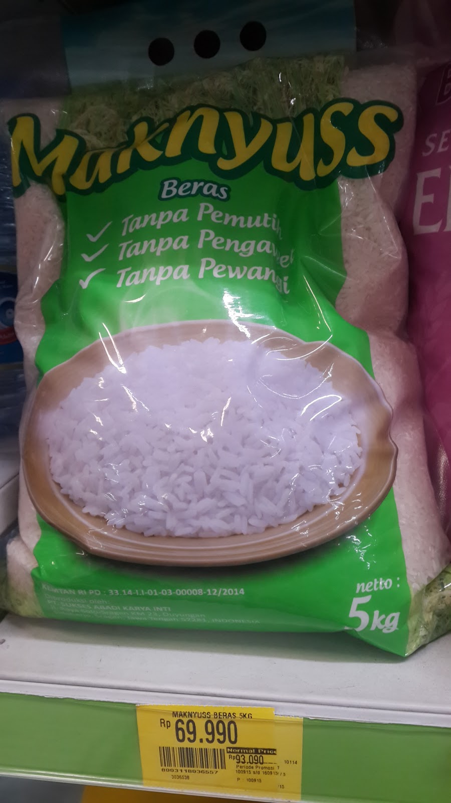 Namanya beras Maknyuss. Saya hunting ke beberapa supermarket nih. Yang pertama saya hunting di Farmers Market.