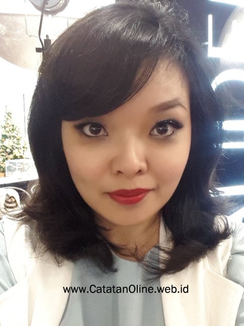 Lipstick ini bentuknya cair tapi sifatnya matte. Tadinya sih saya gak mau cobain karena saya terlanjur pakai lipstick yang matte total. Tau dong apa, Purbasari 🙂 Tapi karena saya udah terlanjur dateng ke acara itu, yaudah aku coba aja.