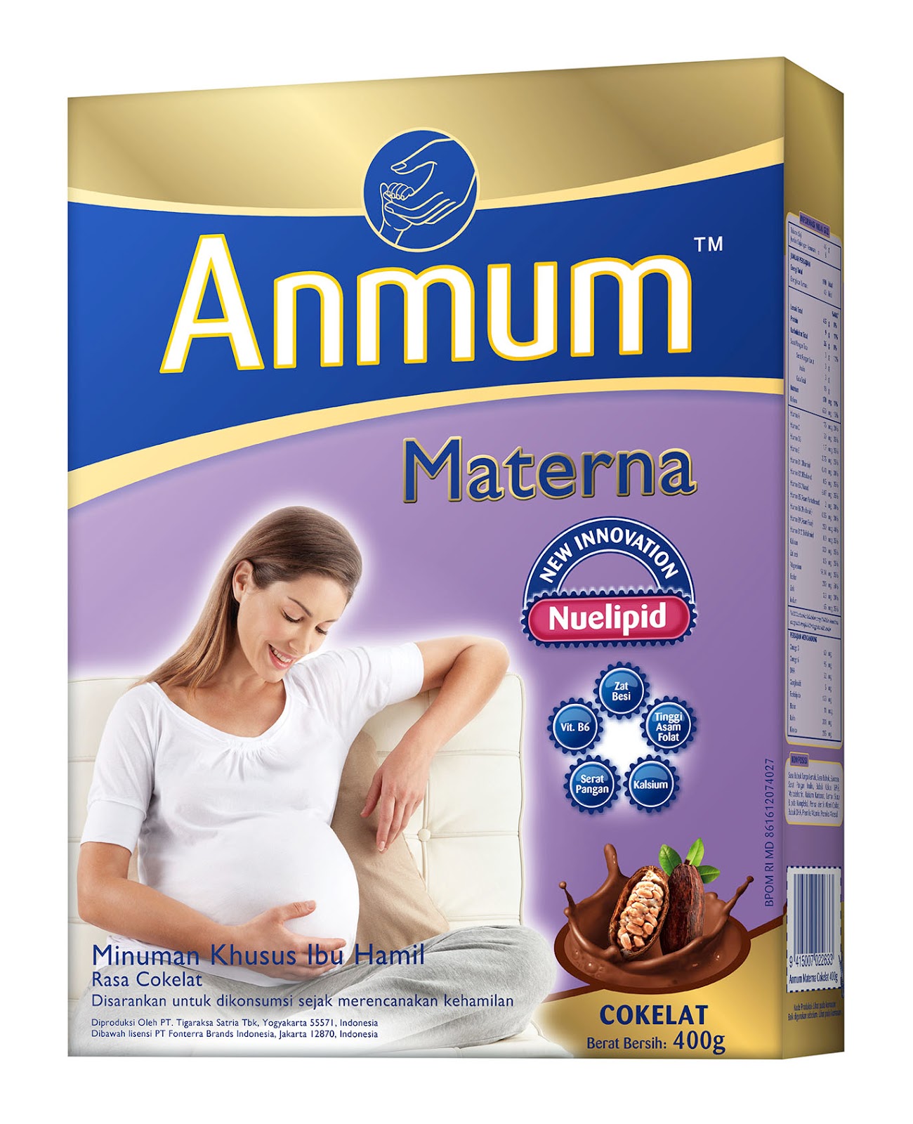 Anmum Materna, susu yang diperuntukkan untuk ibu hamil dan sejak perencanaan kehamilan. Dengan GA, 13 Vitamin dan 8 mineral penting untuk ibu dan janin. Tersedia dalam rasa coklat.