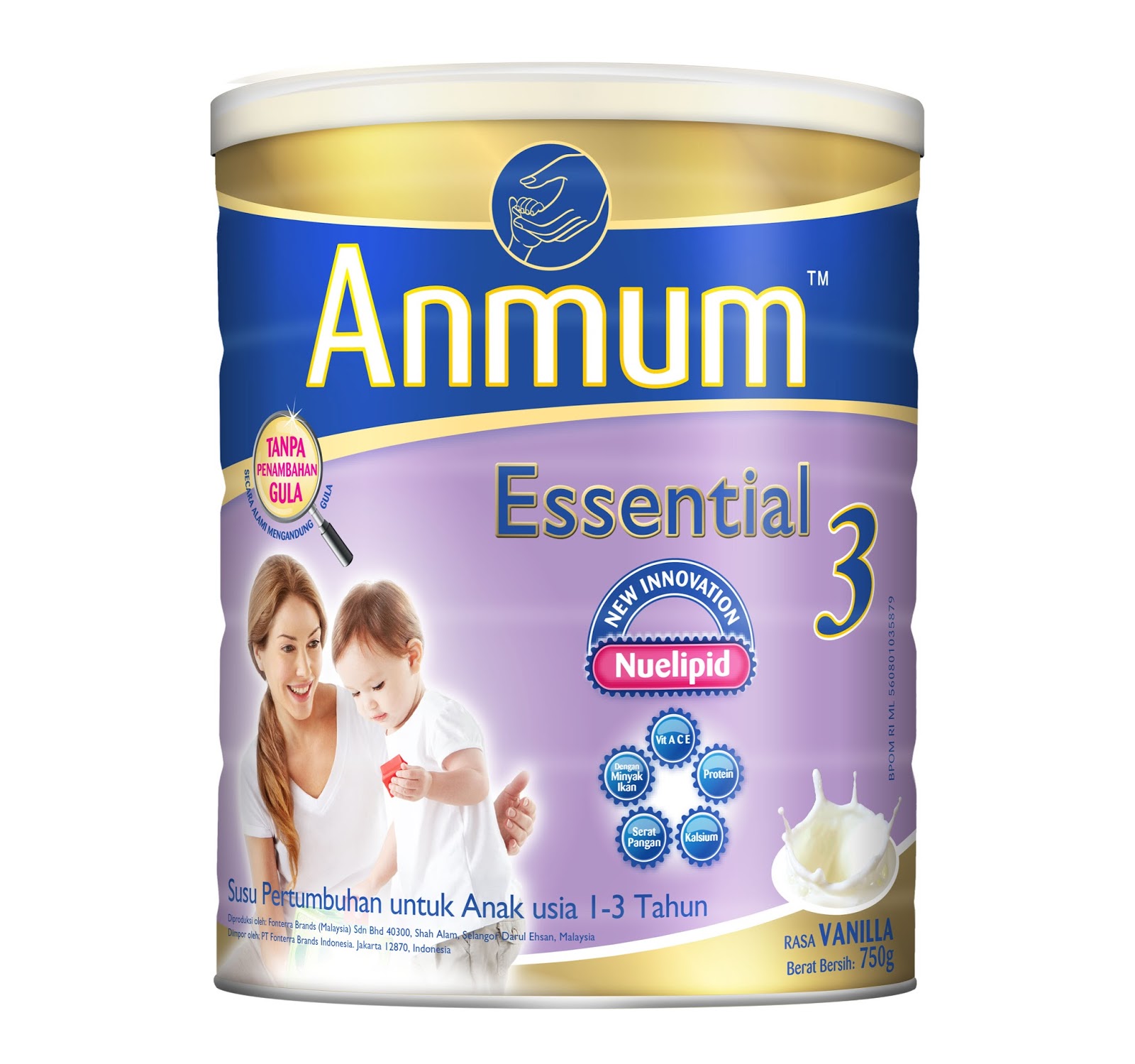 1. Anmum Essential 3 adalah susu pertumbuhan untuk anak usia 1 sampai 3 tahun. Diperkaya dengan Gangliosida (GA) serta 14 vitamin dan 11 mineral lainnya untuk perkembangan kognitif si kecil yang lebih optimum.