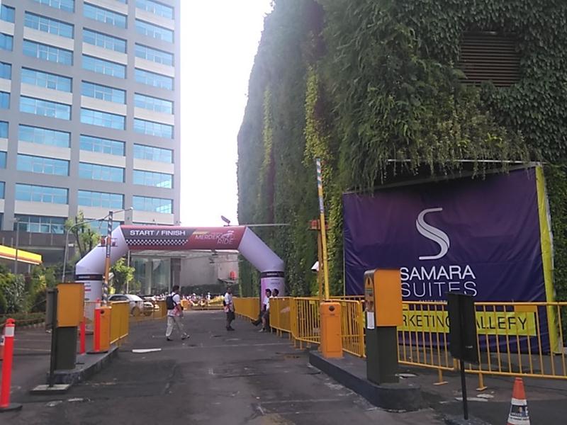 Gimana sudah dilihat eflyer-nya? Nah Merdeka Ride ini diadakan hari Minggu tanggal 21 Agustus 2016 dimana start dan finish di Synthesis Square Gatot Subroto. Dengan biaya 210rb kamu bisa bersepeda sambil merayakan kemerdekaan loh, kok bisa? Iya, karena rute-nya 71 KM yang merupakan HUT RI dan uang yang kamu daftarkan sebagiannya disumbangkan ke yayasan Hayandra Peduli Foundation melalui komunitas “Bersepeda Untuk Berbagi“. Nah nantinya uang hasil sumbangan ini rencananya akan digunakan untuk operasi bibir sumbing bagi anak-anak yang tidak mampu di seluruh Indonesia. Dimana diperkirakan di Indonesia setiap tahunnya ada sekitar 9000 bayi terlahir dengan kondisi bibir sumbing. Bisa kamu lihat dibawah bahwa lokasi startnya berada di halaman parkir gedung Synthesis Square, kerennya, seluruh dinding gedung dari Synthesis Square ini ditanami pohon loh, pokoknya Go Green banget 🙂