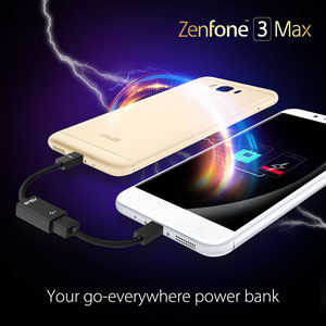 Pernah gak sih kamu ngalamin misalnya kamu lagi jalan sama teman kamu, terus teman kamu ingin meminjam power bank dari kamu, sementara si power bank sedang habis? Kalau saya sih pernah 🙂 Nah, si Zenfone 3 Max ini bukan hanya awet sampai seharian, tapi dia smartphone sangat dermawan loh! Alias dia bisa berfungsi sebagai power bank. Jadi caranya menggunakan adapter USB on-the-go (OTG) aja. Keren banget gak sih!