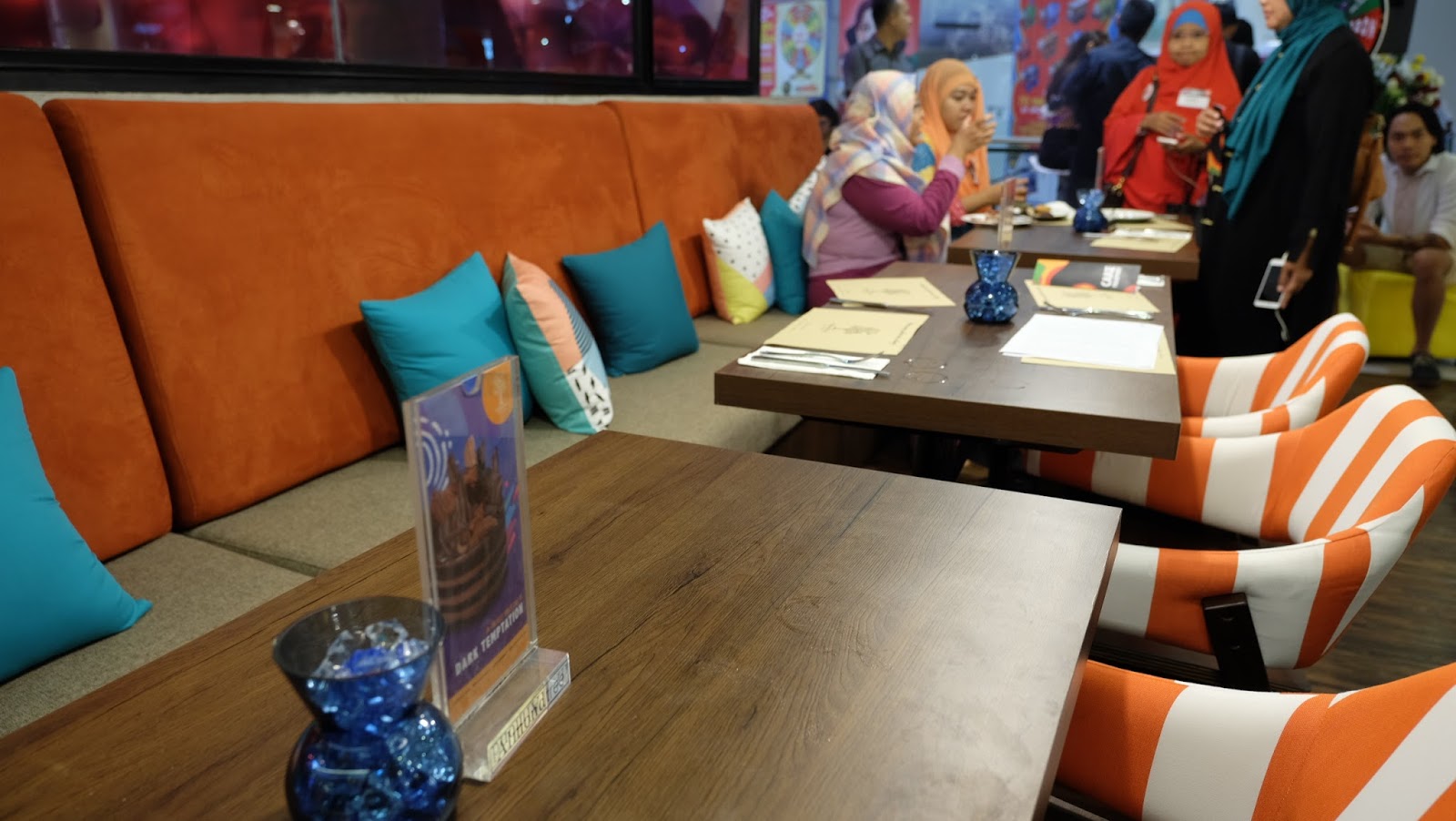 Interiornya disini cukup play, fun and so cheerfull, terlihat dari dekorasi dan ornamennya banyak bermain warna disini. Pas banget deh marketnya untuk para milenial, bisa langsung menikmati me time disini berjam-jam 🙂