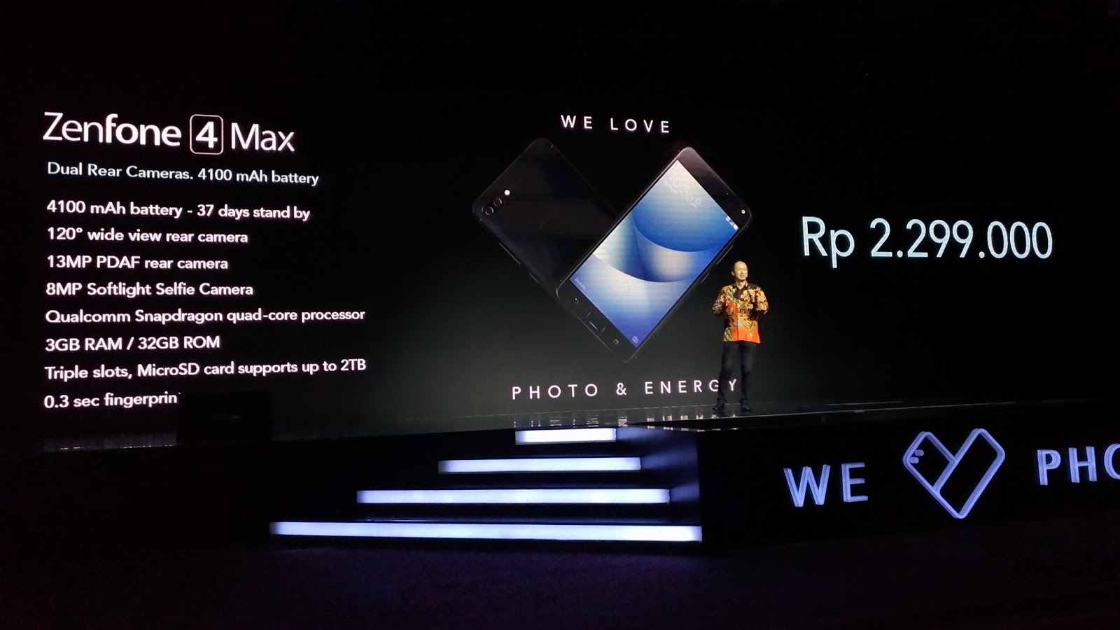 Beliau mengatakan bahwa Zenfone 4 Max ini juga memiliki fitur wide angle 120` dengan 200% wider view, untuk memudahkan para users mengambil object dengan leluasa.